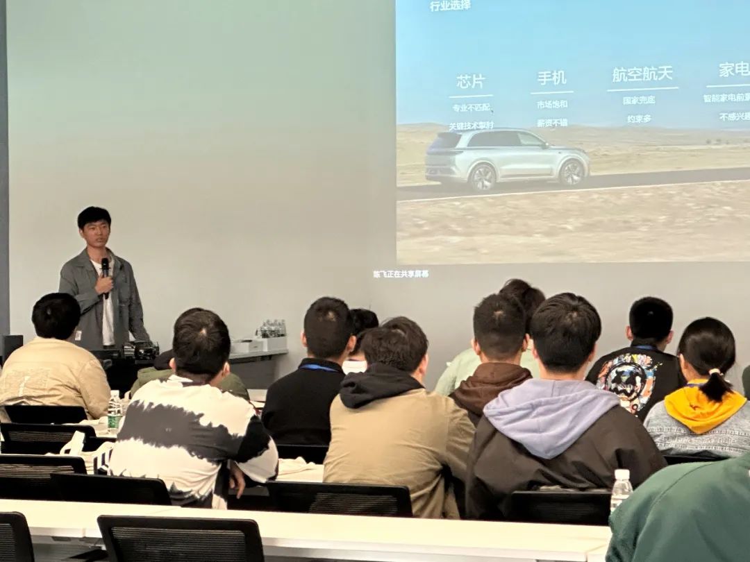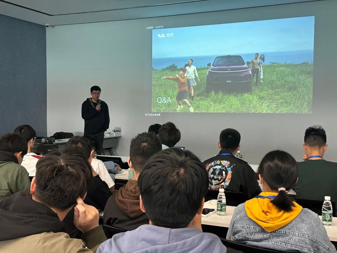 理想汽车的车辆控制部总监宁昀鹏还为同学们详细介绍了公司的最新技术。他们向同学们展示了基于NVM的发动起功率调节、基于MPC的能量管理和能量预测等技术,让同学们对新能源汽车领域的技术发展有了更深入的了解。同学们在专家的详细讲解下,深入了解了新能源汽车领域的前沿技术和应用方向,进一步激发了他们对新能源汽车行业的兴趣和热情。