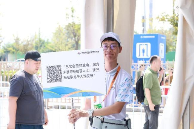 作为本次服贸会南登录厅负责闸机管理的一名“05后”志愿者,许家铜的主要任务就是核验进场观众的预约信息,她说“作为首钢园里的第一道关卡,我们常常要面对观众各式各样的问题。有的观众因为预约错了日期被拦在了门外,有的观众预约了国家会议中心会场,却跑到了首钢园,还有的观众不熟悉整个展区的布局,需要我们提供精准的信息指引。”她分享了一段印象深刻的经历,“有一次我帮三位老爷爷填写了预约申请,没想到他们第二天竟特意来岗前找到了我,‘丫头!昨天是你帮我们预约的,真的太感谢你了!’当心贴心的服务收获心比心的感动,那一刻真正感觉到了志愿服务的意义。”