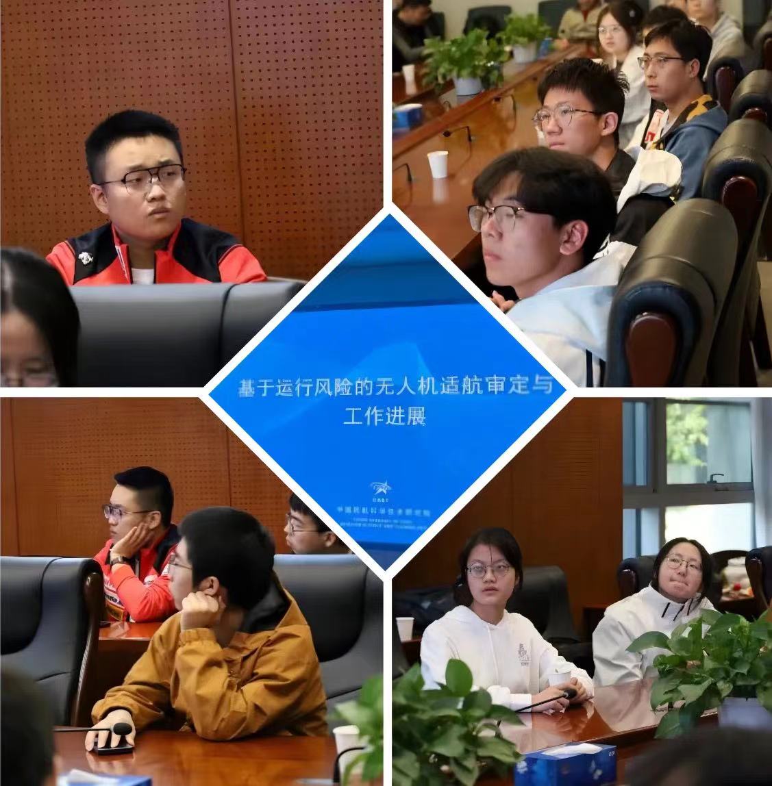参观结束后,同学们来到交流会议室。付金华老师作了题为“基于运行风险的无人机适航审定与工作进展”的报告。报告从我国无人机行业发展概况、适航管理的基本概念、适航管理的在无人机产业发展中的作用、适航管理要素、基于风险的无人机适航审定探索这五个方面展开,为同学们深入解析“什么是适航”,激发了同学们对于适航领域的热情和兴趣,让他们更加深入地了解了这个充满机遇和挑战的行业。