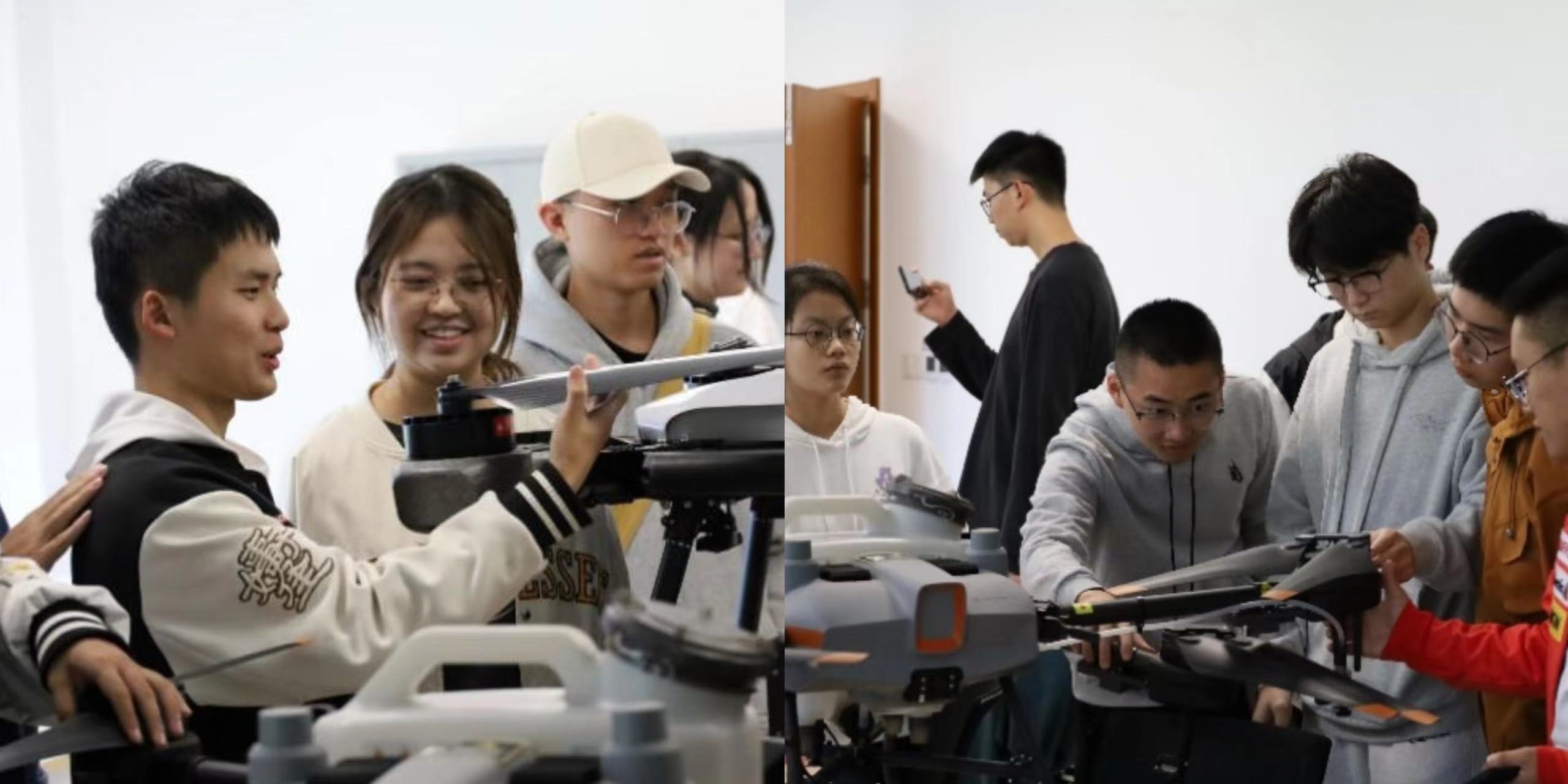 在航空器适航研究所(无人机审定中心),同学们看到了来自大疆和盘拓的植保无人机和物流无人机,并对其材料质地、工作原理、工作方式、工作用途、审定过程与老师展开热烈讨论,表现出极大热情,对无人机及适航在无人机领域的应用有了更加深入的理解。
