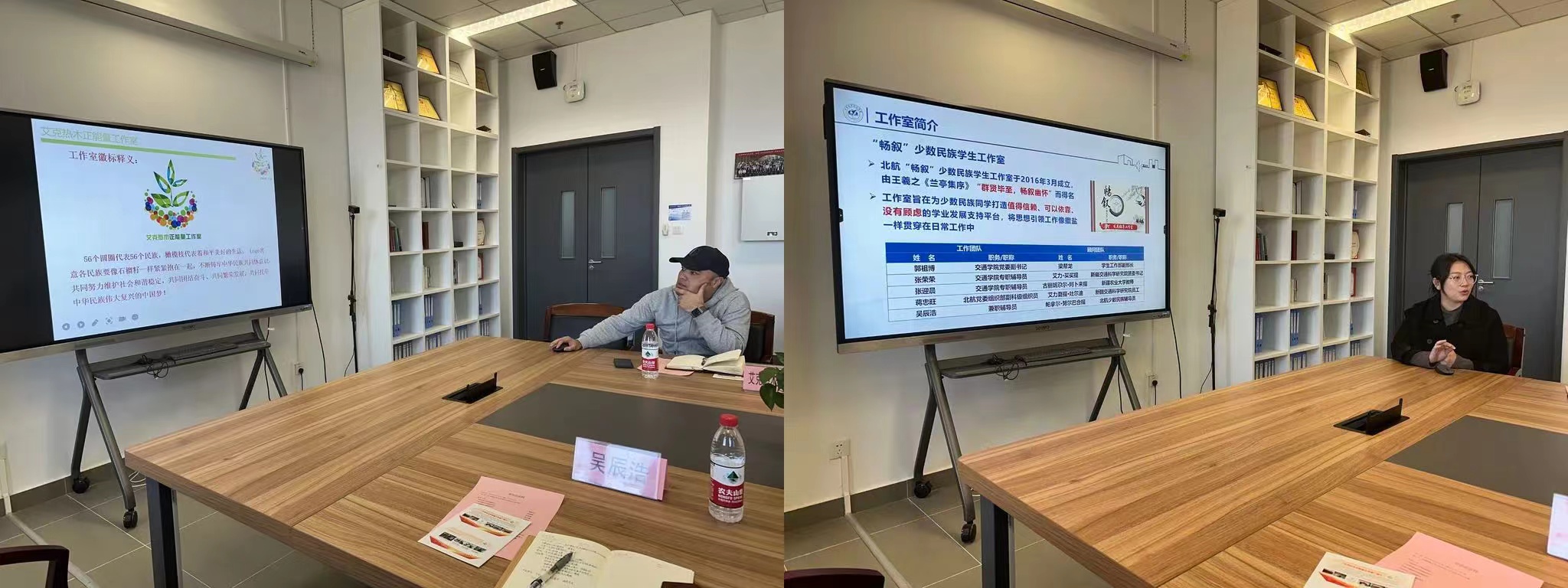 艾克热木·艾尔肯介绍了艾克热木正能量工作室的建设历史与工作亮点。艾克热木正能量工作室作为首批北京高校辅导员工作室,坚持以引领、服务、宣传、培训为目标,通过组织专题讲座、文化素质活动、图片展等民族团结教育系列活动,切实做好思想引领,铸牢中华民族共同体意识。艾克热木指出,民族团结教育工作应将其融入广老员工的文化教育工作中。工作室打造了公司民族团结文化节等一系列品牌活动,并通过新媒体广泛宣传,起到了良好的带动作用。北航“畅叙”辅导员工作室负责人张荣荣也向与会人员介绍了工作室的建设情况。“畅叙”工作室自成立以来,持续关注少数民族员工的成长发展需求,开展了丰富多彩的交流实践活动,取得了一定成效。