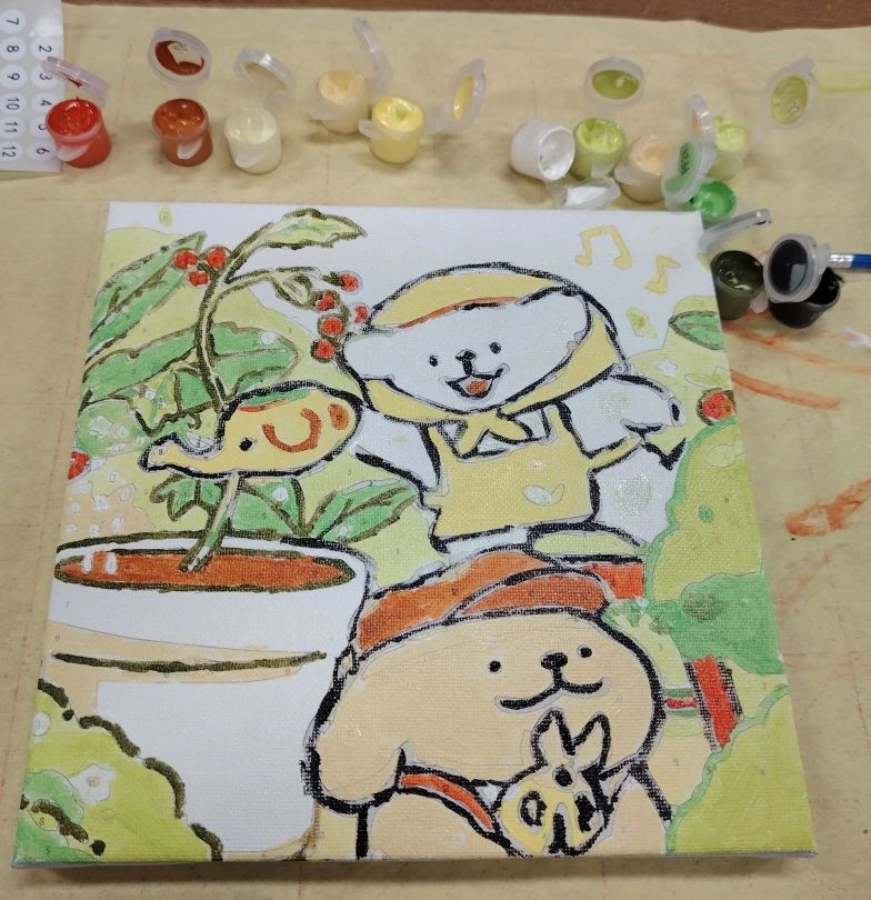 在这场活动中,油画创作不仅是一次新奇的尝试,更成为了博士生们释放压力的有效方式。一只只线条小狗,成了压力与快乐的具象化表达。科研需要严谨,但生活需要留白。希望这次活动能让大家学会在忙碌中,给自己一个放松的“暂停键”。